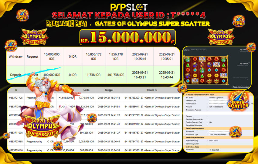 Berikut adalah bukti jackpot paus dan pembayaran kemenangan member setia PSPSLOT: