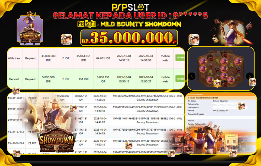 Bukti Jackpot Rp 35.000.000 WILD BOUNTY SHOWDOWN PG SOFT