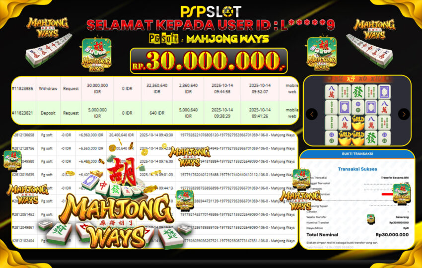 Berikut adalah bukti jackpot paus dan pembayaran kemenangan member setia PSPSLOT: