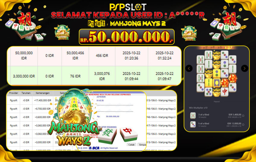 Berikut adalah bukti jackpot paus dan pembayaran kemenangan member setia PSPSLOT: