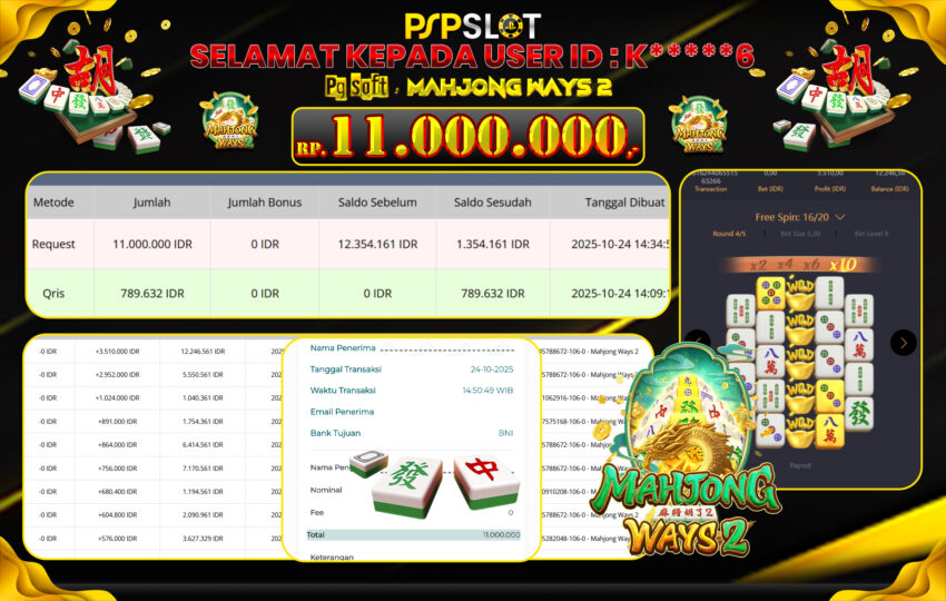 Berikut adalah bukti jackpot paus dan pembayaran kemenangan member setia PSPSLOT: