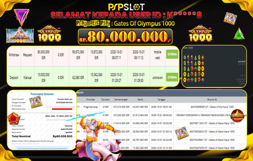 Berikut adalah bukti jackpot paus dan pembayaran kemenangan member setia PSPSLOT: