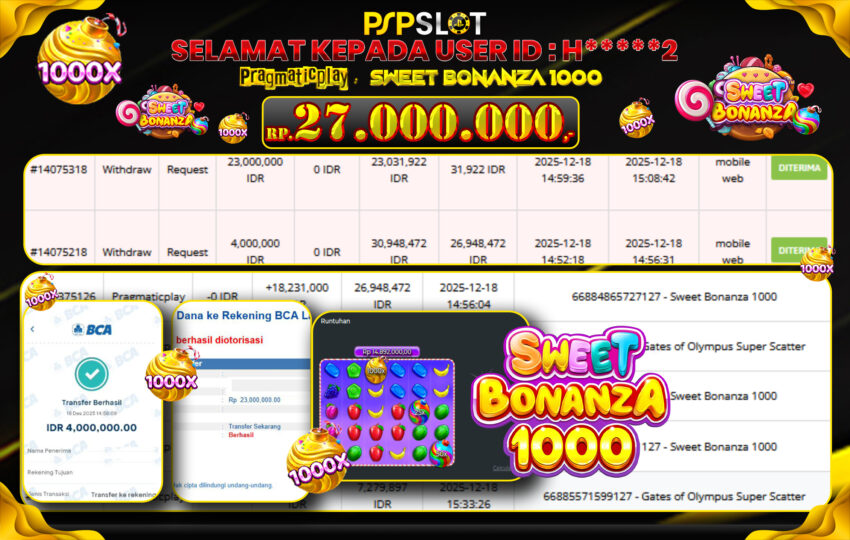 Berikut adalah bukti jackpot paus dan pembayaran kemenangan member setia PSPSLOT: