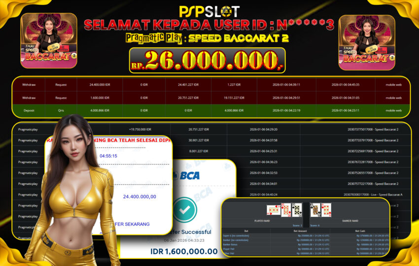 Berikut adalah bukti jackpot paus dan pembayaran kemenangan member setia PSPSLOT:
