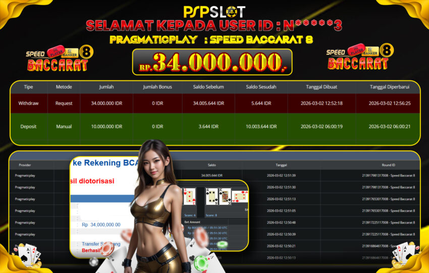 Berikut adalah bukti jackpot paus dan pembayaran kemenangan member setia PSPSLOT: