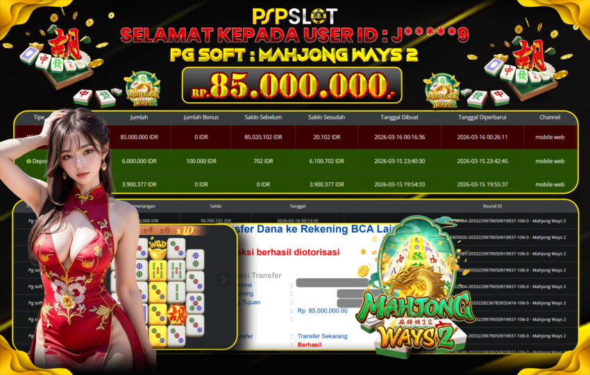Berikut adalah bukti jackpot paus dan pembayaran kemenangan member setia PSPSLOT: