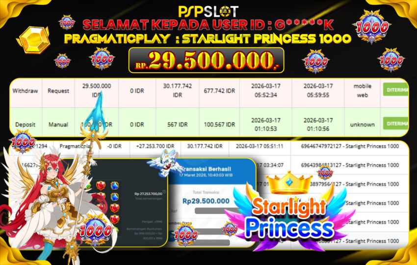 Berikut adalah bukti jackpot paus dan pembayaran kemenangan member setia PSPSLOT: