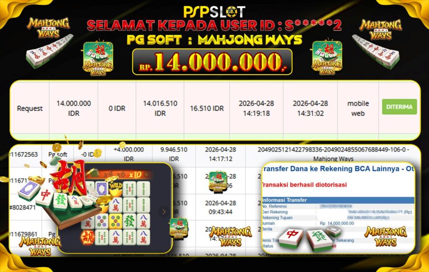 Berikut adalah bukti jackpot paus dan pembayaran kemenangan member setia PSPSLOT: