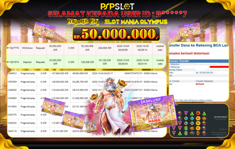 BUKTI JACKPOT PSPSLOT SLOT MANIA OLYMPUS Rp 50.000.000 LUNAS