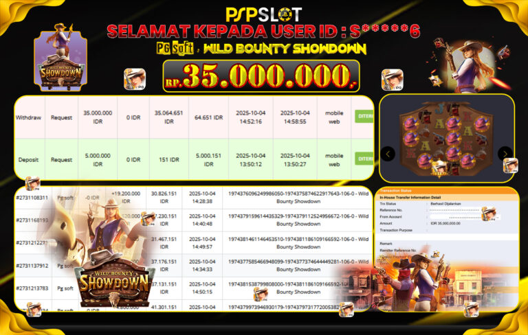 BUKTI JACKPOT WILD BOUNTY SHOWDOWN PG SOFT Rp. 35.000.000 LUNAS