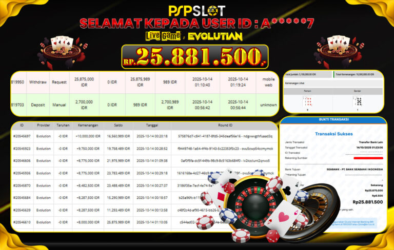JACKPOTPAUS.COM – BUKTI JACKPOT PSPSLOT SLOT MANIA OLYMPUS Rp. 50.000.000 LUNAS menjadi sebuah bukti pembayaran dari situs PSPSLOT sebagai situs bandar slot online resmi dan terpercaya. Permainan slot online seiring berjalannya waktu semakin banyak menarik minat para slotter. Terlebih lagi dengan akses yang semakin mudah dan praktis. Anda bisa menikmati berbagai provider slot resmi dan pilihan live…